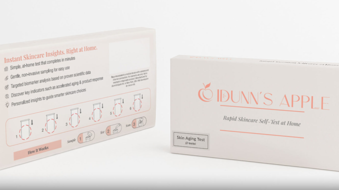 For example, the Idunn’s Apple Skin Aging Self-Test Kit is presented as an at-home test that generates an “immediate report” in minutes and summarizes results in categories such as: